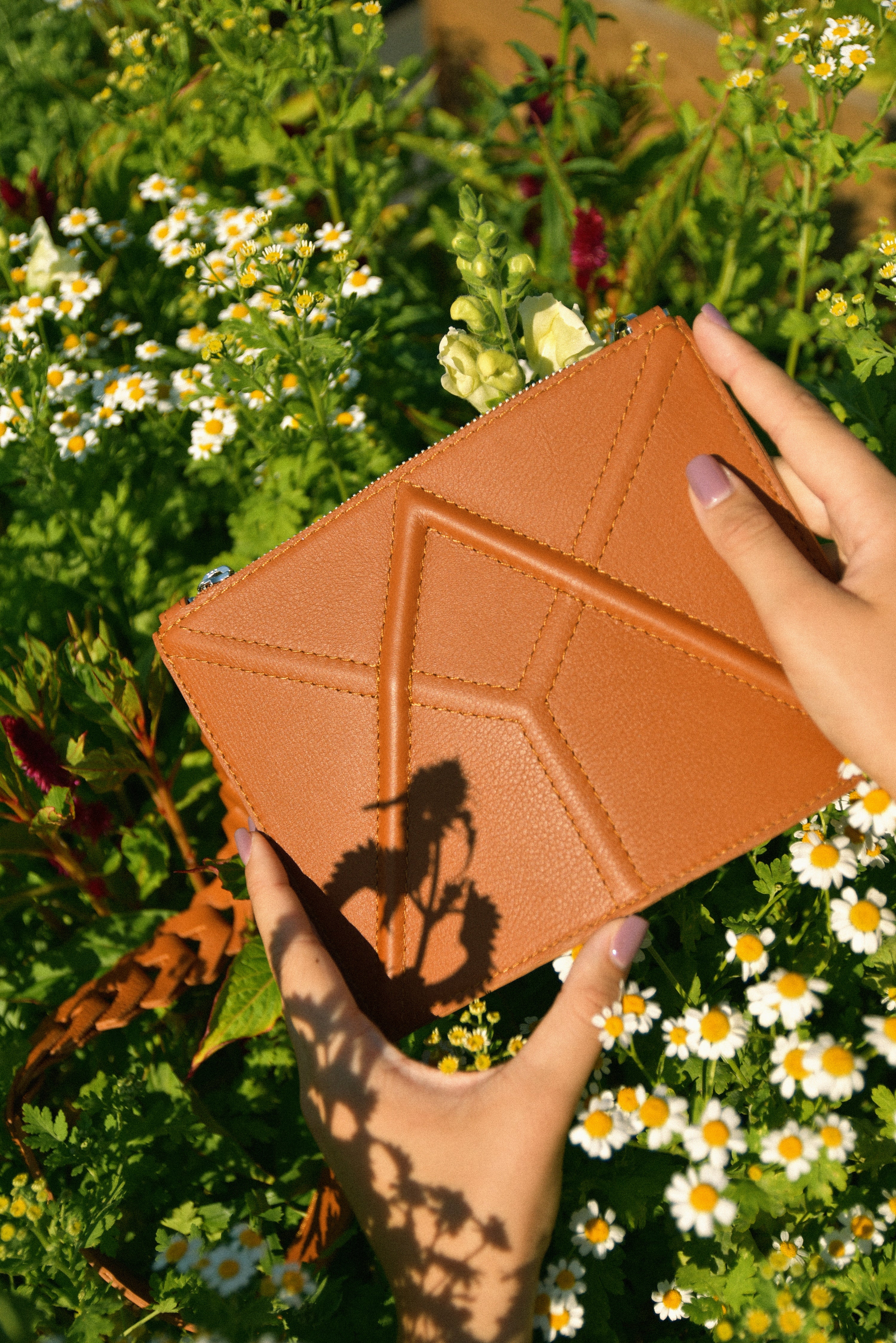 ORIA GRID LAPTOP TOTE - Caramel Brown